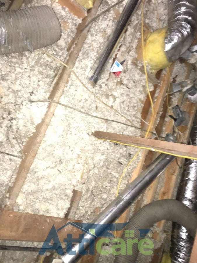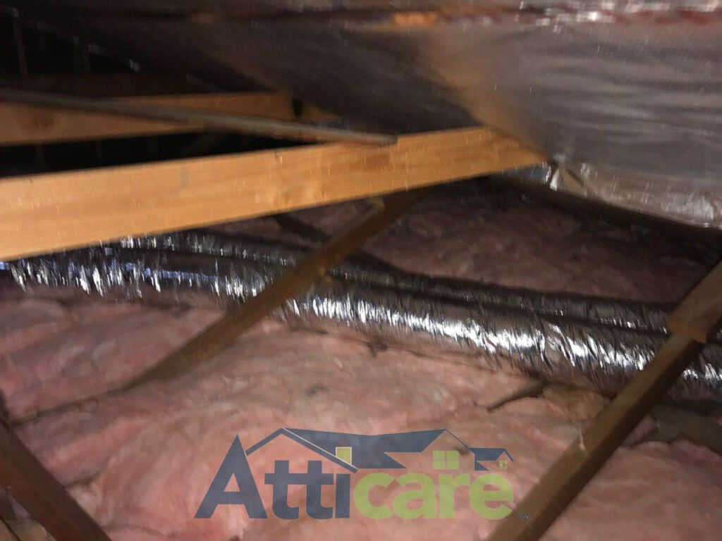 Atticare provided all the works for this attic. The old insulation was removed and completely cleaned out. Once it was completely clean the crew sanitized with 100% natural solution. Then they rodent proofed sealing all entry points that rodents might have access to. After this they placed a radiant barrier, radiant barriers are designed to reflect heat instead of absorbing it. Our crew also installed a QuietCool whole house fan, a ventilation system that will replace all of the hot air. A QuietCool will save you 50-90% on your A.C. related costs. Finally the crew installed brand new R-38 batts insulation. The home is now energy efficient.
