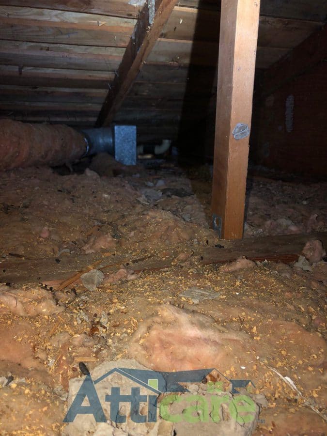 We removed the existing and decompressed insulation from the attic using a 19 HP vacuum and removal tubes. After we began our next step by cleaning the attic. This process allows us to remove any lingering and unwanted odors in the attic. We then performed rodent proofing in the attic. This process involved sealing holes and gaps we found in the attic. This step is important to prevent future rodent activity. We hope our client is enjoying their newly cleaned attic space.